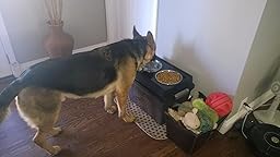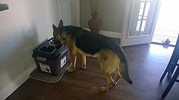 He used to pick up his food bowls and toss them about and now he can't do that since they fit into the lid area. What takes getting used to is; when I have to feed him, I have to take his water bowl out of the enclosure so it doesn't spill into the other bowl. I have him sit/stay while I get his food so if you have a dog that doesn't do this, then he/she will have an open trough to go to town while you are getting the food as the lid has to come off to access the food. No good, he did it once and now I have him wait!