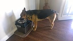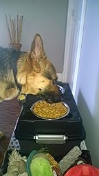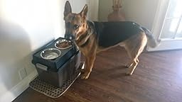 I have an 8mo German Shepherd and I looked around for other elevated feeders and for under $40 I could not find anything that seemed sturdy enough or high enough for him. He stands 27" at the whithers and will get a little taller once full grown so I wanted something he would not out grow. The food storage combo is a great idea and I use 33Lb bag kibble that fits perfectly with extra room for his scoop.