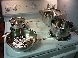After an exhaustive search for the best cookware set for my money, I came across this set by BergHOFF. My mother bought a stainless copper clad set while IN Belgium 25 years ago and I must say this is the closest thing to it...exceeds All-Clad, etc. I've used most of the pieces this weekend and what a joy it is to have cookware that heats evenly AND fast. Nothing sticks and cleanup is easy. (Be warned that all stainless saute pans will blue a bit at high heat, it's what they're for. This is easily remedied with a quick swipe of stainless cleaner.) I'm glad I did my homework and stayed patient for once. Mom would be proud of me. BergHOFF Earthchef Professional Copper Clad 10-Piece Cookware set