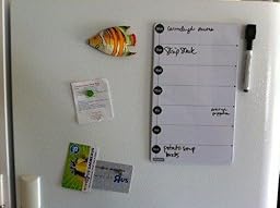 Recently moved into a new apartment with the plan of keeping organized, eating healthier, and being less spontaneous with meals. It's the perfect size to plan out breakfast/lunch/dinner, but the space is otherwise lacking. Still, it suits my purposes well. The magnets are strong and hold it to the fridge with little issue. The provided marker is rather cheap, although it's convenient with the eraser and magnet attached to the cap. I still invested in some additional fine-point dry erase markers to add some variety (and they were a much better quality).