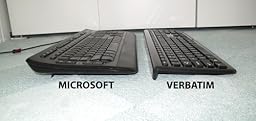 Previously on amazon vine I evaluated the Microsoft wireless desktop (keyboard/mouse) system with their 3000 series keyboard, which is priced as a kit to within 10 dollars [update 9/2010 price disparity has grown, and I have found the microsoft keyboard has the farthest distance of transmission] of the Verbatim desktop. I chose to give them both 5 stars, however I will discuss the specifics of the Verbatim unit here and compare it with Microsoft's. If we could award 1/10 stars, Verbatim would rate a 4.7 which rounds up to 5 due to the microsoft blue mouse features that surpasses the Verbatim mouse. The two are both excellent products but designed around different concepts so I'm choosing to review the differences which gives the buyer as much detail on the two excellent products enabling an educated purchase of the system that best suits their needs.