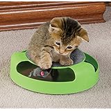 The idea for this toy is wonderful, granted cats love chasing movements. But the actual product, is a real piece of crap. You clip on the little hidden mouse and it moves underneath the round plastic thing. But god forbid your cat actually touches it. The motor sticks making an awful and loud noise, as you can only assume, then the little mouse you clipped on falls off leaving the toy to burn out or burn the batteries. If you have more than one cat, Baddd toy. if you have a cat that likes to pounce, and stay on its prey. Badddd toy. If you have a cat thats skiddish with loud noises, baaaddd toy. If you don't have money to just blow.. Badddd TOY. I actually didn't even buy this one. I bought a more expensive version. But i got this one. Then was notified saying that the more expensive toy was no longer being made because of so many malfunctions etc. Now, I bought a more expensive one, that doesn't work. So why send me a cheaper version, that i could of paid LESS for, thinking it would work?? it doesn't. Now! once they come out with a toy that has a motor that can take a tiny cat sized beating.. then maybe this product will work someday. i DO NOT recommend paying anymore than $10 for this product EVER. Unless you're a dead millionaire that left all your assets to your cat. Its pointless and a waste of money.