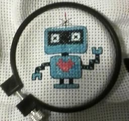 I said to myself one morning, "Hey, cross stitching could be fun for a 23 year old male to have as a hobby", so I went on Amazon and did a little searching. What did I find? THIS ROBOT!! Ever since then, I don't go anywhere without him.
