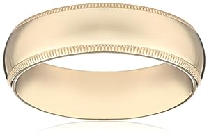 • Men's 14k Yellow Gold 6mm Comfort Fit Milgrain Plain Wedding Band