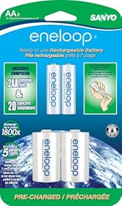• Includes 2 AA eneloop Ni-MH Pre-Charged Rechargeable Batteries