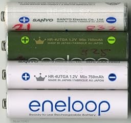 This package (Sanyo SEC-HR4U4BPN) contains four second-generation eneloop AAA rechargeable batteries. I have tested those cells using my old La Crosse BC-900 Advanced Battery Charger. Here are my findings: