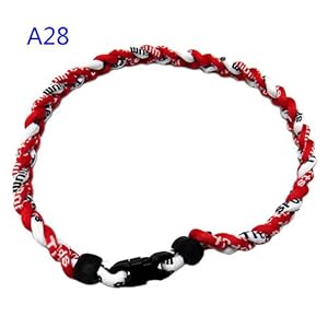 Misleading product. The red and white necklace that came in the mail felt a little lighter than my other titanium necklace. After a few days, I decided to investigate. I cut the necklace in half with scissors and was right. There wasn't any kind of metal inside the outter casing. Very disappointed.