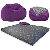* FUF Foam - not comfortable, old bean bag chairs were more comfortable, the foam is like they took couch cushions and put them through a chipper shreader, so foam has all different angles, and some pieces are hard, some make a plasticky noise ... so chairs feels lumpy/bumpy when you sit in it, and it compresses too easily.