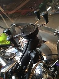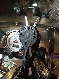 Mounted quickly to my existing Ram Mount on my 2008 Victory Kingpin's handlebars. I had a camera mount on there, which I use to video trips and stuff. But, I thought this phone mount would be useful for commutes (keeping up with traffic, etc.). The mount itself has a bit of play in the housing, which gives you about 45 degrees of 'wiggle', so I tried to center that 'wiggle' straight up before I tightened the base mount on the ball.