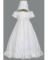 This 27" long embroidered cotton gown is perfect for your little baby. Beautifully accented with satin ribbon on the bodice, sleeves hat and hem. The bows on the bodice and sleeves complete the outfit. Comes with matching bonnet.