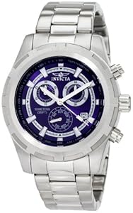 Same slightly oversized watch case and bracelet (which I like) as with my other Invicta. No issues with broken watch hands, markers, etc. as reported with some Invicta models. Again the flame-fusion crystal is holding up well. I have had many watches with mineral crystals become unreadable or at least unattractively scratched, but these crystals seem to relatively impervious to normal wear and tear. The SS band does eventually scratch to dullness, but plastic scrub pads, and a good stainless steel cleaning cloth work wonders to rejuvenate. Appears to keep time faithfully. Only 4 stars rather than 5, was hoping to be more blue than purple. Picture appears indigo-like in color, and whaddya know so is the watch (despite some reviewers reports). Also the manual that accompanied my Chronograph didn't appear to address my model, but I'm finding content online. For the money and look, quite hard to beat. I would recommend to a friend interested in this specific color in a pretty decent watch.