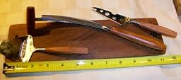 Here is a rundown on the knives/cutters that come with the set. The leftmost one depicted in the photo at the top of the page (at the time of this review) is called a Dutch Cheese Knife. The dual handle design and very sharp blade make this perfect for cutting very hard cheeses like Parmigiano-Reggiano. Since I often use that cheese as a table cheese that is eaten in pieces with fruits or accompanying wines that are tannin-rich, having this knife was the reason I purchased this set in the first place. The blade, like the others in the set, is shaped to cut through the harder cheeses without crumbling it, and retains its sharpness. Another plus is the safe design of this particular knife. The two handles allow you to positively control the cut of even the hardest cheese without the blade slipping. Most single-handle knives tend to slip or skew on hard cheeses and have been known to cut more than the cheese. Also, like the rest of the design the handles are well thought out in that they have an ergonomic fit to your hand and are nicely constructed. I am guessing that they are made of mahogany, but could be wrong.