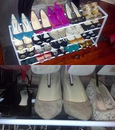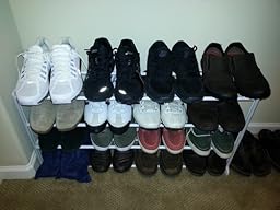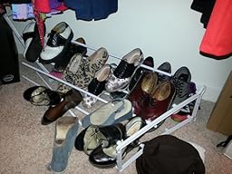 In theory, looks like an inexpensive solution to a shoe hoarding problem, but in reality it's unstable, cheap and flimsy. It's easy to build but the poles fall out of place all the time. I placed maybe 12 pairs of shoes on it and came back to my closet to find that it had collapsed. Shoes are all over the floor again.