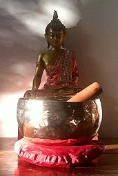 Next, Great price for what it is. Next, LOOKS WOW- You don't think it will look as nice as it does. You have to like the unique look of handmade things, this looks handmade, sounds outstanding and is a wonderful addition to our home altar. Next, you can use this two ways, for a harmonic meditation or to signal the beginning, end and segments of your meditation. For either purpose it is LOUD. I also like that the striker makes both male and female sounds, so altogether you can obtain 4 distinct sounds from the bowl. I am no musician, but I can tell when something is ringing true and this IS. It says it is tuned F and my widget for tuning that takes batteries (so it has to work) says that's what I am ringing. LOVE LOVE LOVE this bowl. I also love that I will have it for many years to come as it is my 10th anniversary present from my oh so fantastic husband.