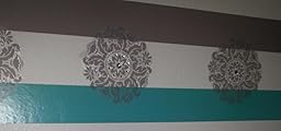 The decal was difficult to put on perfect due to the cutouts. Does take more time than the Wall Pops single color borders to get a straight line. The design was interesting but if you are putting in on a dark wall/background, the white/cream on the decal looks cheap. It was easy to remove without damage to the walls. Didn't use the rhinestones that came with it so not sure how those will perform over time. Other options available from same company were better quality.