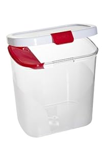 This container exceeded my expectations out of the box. Much to my surprise, it's sturdy and well made, thicker plastic than your average storage container. The lid snaps tightly, which ensures confidence that it'll keep critters and moisture out. It holds a 5 lb bag of flour perfectly. The one thing that really bothers me is that the leveler is not removable; it annoys me when I'm cleaning it out and I've scraped my hand/arm while cleaning, probably because I'm rushing. I'd rather be able to slip the entire bag of flour into the container instead of dumping it into the container. With the leveler locked into place, it isn't possible. I'm not a fan of red either; clear matches any decor.