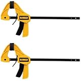 I found myself reaching for the Jorgensen & Dewalt clamps for most of the glue-ups of the small parts. The Jorgensen is definately the most robust of the 4, has the best ergonomics, and easily the largest pads. There is a lot more product for the money put into the Jorgensen clamp! The dewalt is also excellent in function, as it clamps well, pads stay flat, has the largest throat depth, tied with the Jorgensen for max jaw capacity. I did not notice any functional difference due to the smaller pad surface area on a clamp this small. The Dewalt's are not as ergonomic as the Jorgensen clamp, but the smaller pads DO allow it to fit the 1-1/4" dog holes in my workbench, while the Jorgensen's are too bulky to fit through the holes.