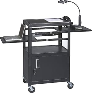 • Includes a 26"H locking storage cabinet and two adjustable retractable shelves to hold a projector or other equipment