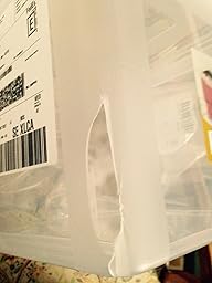 Update; after contacting the supplier they shipped me a replacement file box, in a cardboard shipping box, and this one was not damaged. It works for the purpose of holding my files in a relatively sturdy clear container, so I have updated my stars from one to three. I still don't think it is worth the cost.