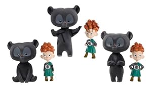 I bought this for my daughters 5th birthday along with the Merida doll . The triplets and bears are very cute and my daughter was so excited to open them and play with them . When we opened the package we noticed The triplets have very little skinny necks and since there rubber they look like they would bend and break easy . Also the bears do not have very big openings in the back so you would have to bend the boys necks to get them in because of that i told my daughter not to put the boys in the bears just play with the bears or the boys. She is ok with that but i was kinda dissappointed that they could not be used as intended . Still super cute .