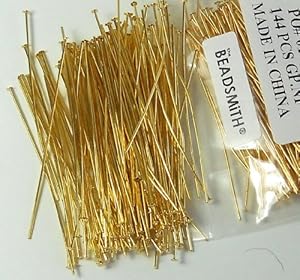 These head pins are a lovely gold color and a good size for beading with several smaller beads or one larger bead. The only con I had was that several of them were bent in the package, but then I realized that I paid for 400 pins. There were three bags of 144 each, which totals 432 pins, more than enough to make up for the bent one's. The pins are thin enough to be easily formed any way necessary.