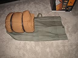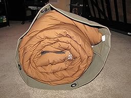 I figured it would be cheaper material but I was surprised to see that it actually feels and looks like the ones that I was looking at. This one was actually better because the ones at the surplus store had small holes in them. Anyway, this bag is huge! Not only can I fit my cold weather sleeping bag in here, I can get the air mattress and some extra blankets in too. I'll be able to have all of the sleeping gear in one bag and this will help with organizing things better too. The bag is plenty robust and is made out of heavy duty 22 oz. cotton canvas. Stitching is well done and the heavyweight hook closure mechanism works perfectly to keep items in the bag and not falling out on the ground. All of the stress points on the bag are reinforced with extra stitching and material to make this bag last. It has the classic military style to it and I am very pleased with the quality and price of the bag. I think I'll probably be picking up some more of the smaller sized ones for other camping equipment as well. I highly recommend!