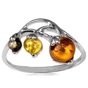 Sterling Silver Multicolor Amber Branch of Berries Ring