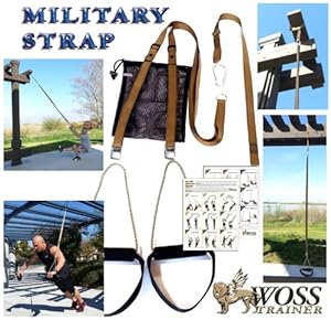 • The Military Strap with built-in Door Anchor is perfect for tree trunks, branches, rafters, open beams, even a door. Take it to your local Gym and anchor it to their bar - fast and easy.