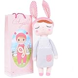 Just adorable. Very soft and the kind of squishy, floppy consistency that makes little kids love to cuddle with them. Babies on up through older kids will have this as their favorite stuffed animal. These hold up in the washing machine pretty well pretty well, too. We have several of this bunny in different colors.