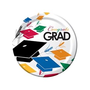 • Creative Converting Big Value 50 Count Round Dinner Plates, Grad Cap Toss