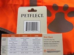 I ordered the Petflect Reflective Dog Vest in size small for my Beagle (20-25 lbs.) The sizing is perfect for him, and it fits great (I posted 2 photos in the customer photos.) The material is lightweight and comfortable. The orange is very bright, and the silver portions are highly reflective-- both of which provide great visibility! I would recommend this product for leash walks on roadways and on trails, especially at night or dawn/dusk and during hunting season. The material probably wouldn't hold up for use in thick brush where it might get snagged. I would definitely purchase this product again!
