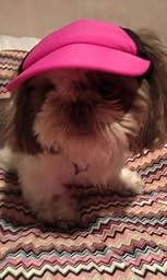 Having read another review about the fit not working so well for big heads, I was a little worried that it would not work for my pit bull. The visor arrived on time and in perfect condition. I immediately tried it on her and it fit great but as the other reviewer stated the bottom strap left the scratchy part of the Velcro exposed and in contact with her neck. I fixed this by applying the soft part of a Velcro strip that I had here at home (any soft material would likely work such as fleece, etc.) to the exposed scratchy Velcro. It was simple fix and is working great! The sizing guide ensured that the hat fits great (the review shows I purchased a small but I actually got a large ~ she is over 70 lbs), it stays on and looks so cute!!