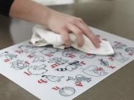 However, the soft surface seems like it would be a downfall when it comes to food. Seems like it would stain easily and possibly be such a gripper like surface that it's frustrating with food stuck to and underneath it. The product is soo neat as a coloring tool that I don't feel like the placemat part is totally necessary....but yes, as a modern design lover, I think they are much cooler than any other placemat and see why people want to use them that way.