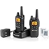 Update-8.1.2013- I've had these for about 9 months now and I thought I would add a couple of things to the review. During the winter when the leaves were down we repeated the going to the store test. This time reception was clear for 3.4 miles and disappeared at 4.1 miles. In January during a power outage I reached for the radios and realized that the base charging unit had been unplugged for about a month (children). The radios still held a full charge and lasted for 25 and 26 hours, not bad. I put in a set of AA batteries afterward and one lasted 78 hours and the other radio lasted 85 hours before communication became impossible. The only problem I have had with this system is with the base charger. The green charging light no longer works. So instead of changing from red to green when fully charged, it remains red. But since it fully recharges the radios anyway I don't consider this a big deal. Still very satisfied with this system.