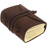 I was looking for a nice blank book for journaling and this definitely fits the bill. It is handmade with an embossed cover, has handmade paper bound into quartos within it, and a respectable amount of sheets. The attached thong keeps the book securely closed, so anything tucked into the pages will stay put nicely. I write with fountain pen and the paper is a tad more absorbent than I would like, but the ink doesnae bleed all the way through the page. That said, there is significant ghosting. If you use ballpoint or gel pen this will not be a concern. The size is convenient for handholding or tucking into your bag for travel.