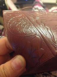 What is showing in the picture here and what I got are widely different in quality. I was expecting a nice book, with slightly thicker leather which as you can see in the image is stitched around the top, the embossing is nicely done with depth to it, and there is a robust color. What I got looks like a cheap knock off of this. There is no depth to the embossing and no stitching around the top. The leather feels extremely cheap and there is a weird lumpy pattern between the patterns around the oak tree that are not there in the picture. I feel like I was completely deceived and I would absolutely not buy this again and certainly would not use this seller.