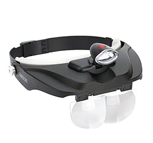 It's a good concept, a visor- style magnifier with flip- down, interchangeable lenses in several convenient magnifications, with a head mounted light aimed at your work. The problems though are many: the headband is not very comfortable and does not stay securely in place, so when you lean over, the visor may fall off; the plastic lenses snap into the visor. The place where they attach is thinner than the rest of the lenses. The first time I removed one, it broke. Not only does the visor itself flip down but so does the lens. Unfortunately, the lens does not stay in place, it gets loose after a few minutes, and then it swings every time you move your head, this makes it useles, because it means the focal point of the lens keeps changing and you cannot bring your objective into focus. Thus, less than 10 minutes out of the box, my magnifier was not in any way useful in my work. I would have been better buying a set of 4 different magnifiers, one of each strength. I may salvage this by supergluing several of the moving parts, but it is defeating the original purpose.