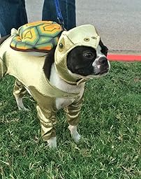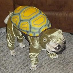 My pug looked adorable in the costume. Nothing beats a pug-tortoise! The costume fit well, except that the shell does not stay on well. It adheres with velcro, but keeps partially detaching. However, my pug found the costume comfortable and did not try to take it off.