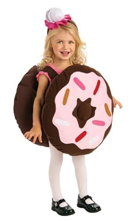 This costume is infinitely cheaper than the other $99+ versions from Pottery Barns and the seductive, high-end costume catalogs that start appearing in September. Even better: we just used the 2-year size for our 5-year-old. It didn't cover her entire torso as in the picture, but it worked just fine for trick-or-treating and a class party. If it is your child's unique dream to be a donut for Halloween, as it was ours, you are in luck.