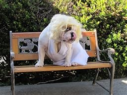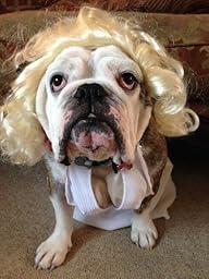 Very funny costume for my 35 pound English Bulldog. I bought a size large, I do wish it would come in larger sizes for the big boned girls. As with all costumes not the best of quality but what is expected from a costume. The wig has ear holes for the dog that does a good job to help keep the wig in place. A great costume for the bully breeds.