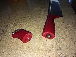 I purchased this KitchenAid set of knives the Jan, 2015. All was good would have given a 5 star review before now .Today the chef knife handle broke in half while cutting a Dairy Queen Ice cream birthday cake. This took less force than cutting a block of cheese. The metal shaft appeared to be off center and closer to the handle surface on one side.
