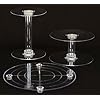 I was surprised when I got the order. First of all, I couldn't tell from the illusion of a picture if the three tiers were together or separate. THEY ARE TOGETHER. AS IN CONNECTED TO EACH OTHER. Each tier fits into holes in the next and they form a stationary three-tiered set. The clear stand is plastic, not glass.