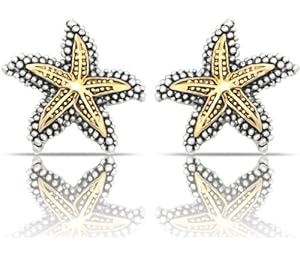 Length: 0.70 inches, Width: 0.70 inches. JanKuo Jewelry Gold Plated Antique Vintage Style Two Tone Starfish Clip On Earrings Ship in Gift Box. COLOR MAY VARY FOR FREE GIFT BOX.