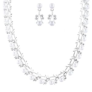 • ACCESSORIESFOREVER Bridal Wedding Jewelry Set Crystal Pearl Beautiful Elegant Necklace