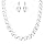 Sophisticated and stunning, this silver plated necklace and earring set features a vine of white faux pearls and sparkling rhinestones. The perfect floral accessory to your wedding, this set coordinates beautifully with your white or ivory wedding dress. The necklace has a lobster claw closure. Earrings have post back closures for pierced ears.