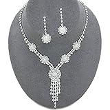 • ACCESSORIESFOREVER Bridal Wedding Jewelry Set Crystal Rhinestone Pearl Floral Vine Design Necklace