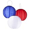 • Set of 3 Hanging Oriental 10" Weatherproof Rechargeable Nylon Solar Lanterns - Red, White and Blue