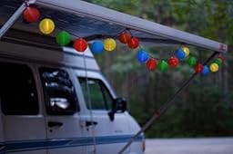 But the thing about these lights is that they are Cool with a capital C. They're fun. They stretch out 20 feet to slightly illuminate the surroundings with multi-colored LED lights shining through likewise multi-colored Chinese lanterns (the quality is actually decent on the lantern hardware. It's an appealing presence and they kind of make you happy as they glow merrily through the evening.