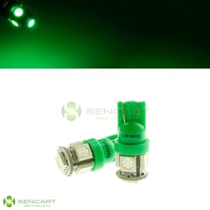 • 2x T10 5-smd 5050 LED Green Lights Bulbs for 194 168 W5w Interior,door, License Plate, Parking Lights