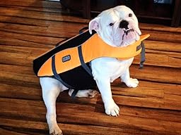 • Outward Hound Kyjen  22021 Ripstop Dog Life Jacket Quick Release Easy-Fit Adjustable Dog Life Preserver, Large, Orange.